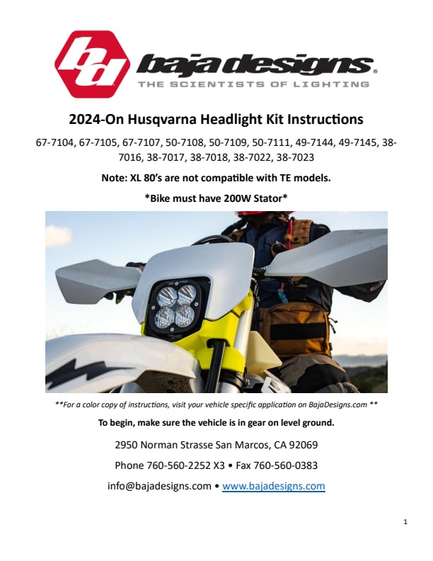 Upgrade your off-road lighting with the Baja Designs Squadron Pro LED Headlight Kit for the 2024–2025 Husqvarna off-road motorcycles. This premium LED moto light delivers unparalleled performance for trail riders, dual-sport enthusiasts, and desert racers looking to dominate the trails after dark. Developed in partnership with Motominded, this headlight replacement kit offers incredible vertical and horizontal light spread—providing optimal visibility across technical terrain and open desert alike. The Squadron Pro outputs a powerful 4,095 raw lumens, giving you race-level lighting that transforms night into day. Our uService® technology allows riders to customize their light pattern, choosing between the included driving/combo lens for a wide coverage pattern that lights up Zones 1, 2, and 3, or swap in the optional spot lens to punch deep into Zone 4 when speed is the priority. This kit is 100% plug-and-play thanks to the included Husqvarna-specific connector, making installation quick and hassle-free. Whether you're racing, exploring, or trail riding, this LED headlight kit not only improves nighttime visibility but also increases daytime safety on the trail. Backed by our 30-day satisfaction guarantee and Limited Lifetime Warranty for the ultimate in purchase protection.