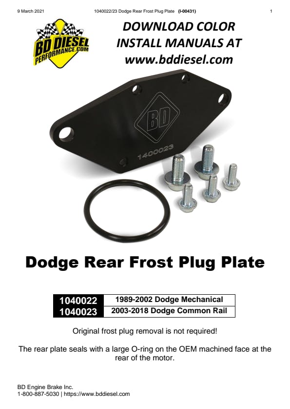 BD Cummins Killer Frost Plug Plate - Dodge 1989-2002 5.9L