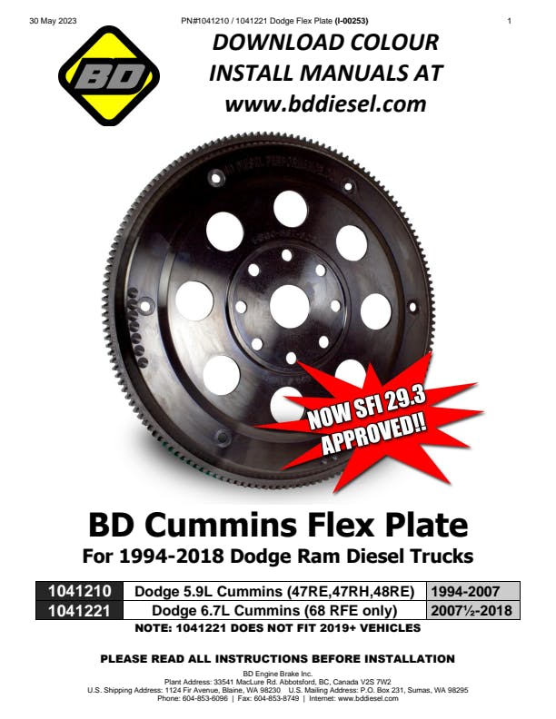 BD 6.7L Cummins Flexplate Dodge 2007.5-2018 68RFE