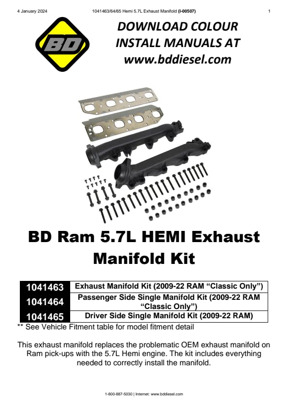 Experience unparalleled performance and durability with our enhanced Dodge/RAM truck exhaust manifolds, specifically designed for 5.7L HEMI engines. Our BD upgraded manifolds address common exhaust manifold bolt failures by incorporating extended fasteners and spacers that effectively withstand thermal expansion. In addition, we've engineered independent mounting locations for the heat shield, separating it from the mounting bolts to further enhance reliability. Crafted with precision, our BD Manifolds boast a robust, thicker design, and are constructed from high-silicon ductile iron to combat warping, ensuring your vehicle remains at peak performance for the long haul.