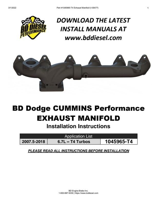 BD 6.7L Cummins T4 Exhaust Manifold Dodge 2007.5-2018 2500/3500 Pick-up