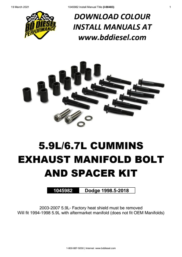BD 5.9L/6.7L Cummins Exhaust Manifold Bolt and Spacer Kit - Dodge 1998.5-2018