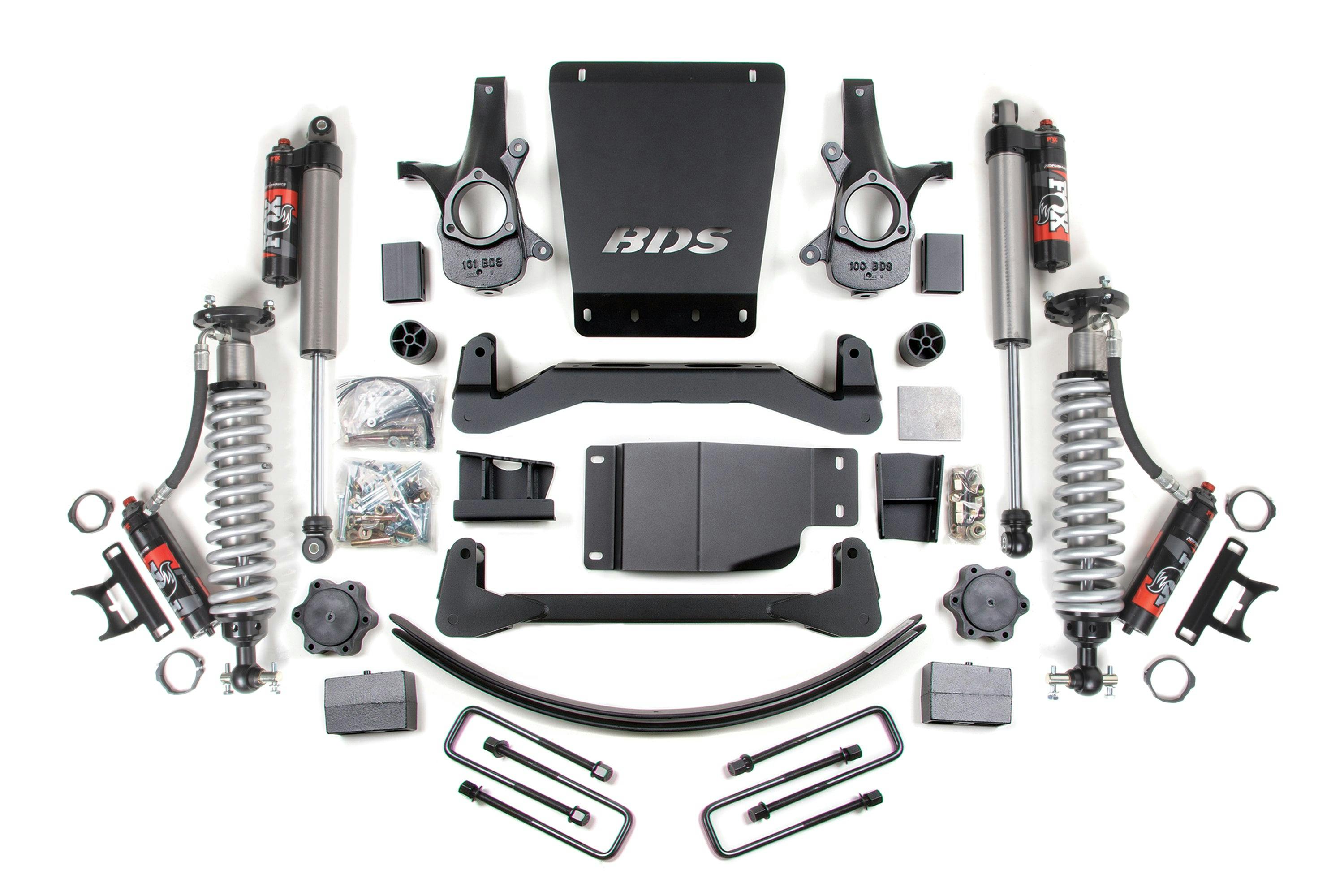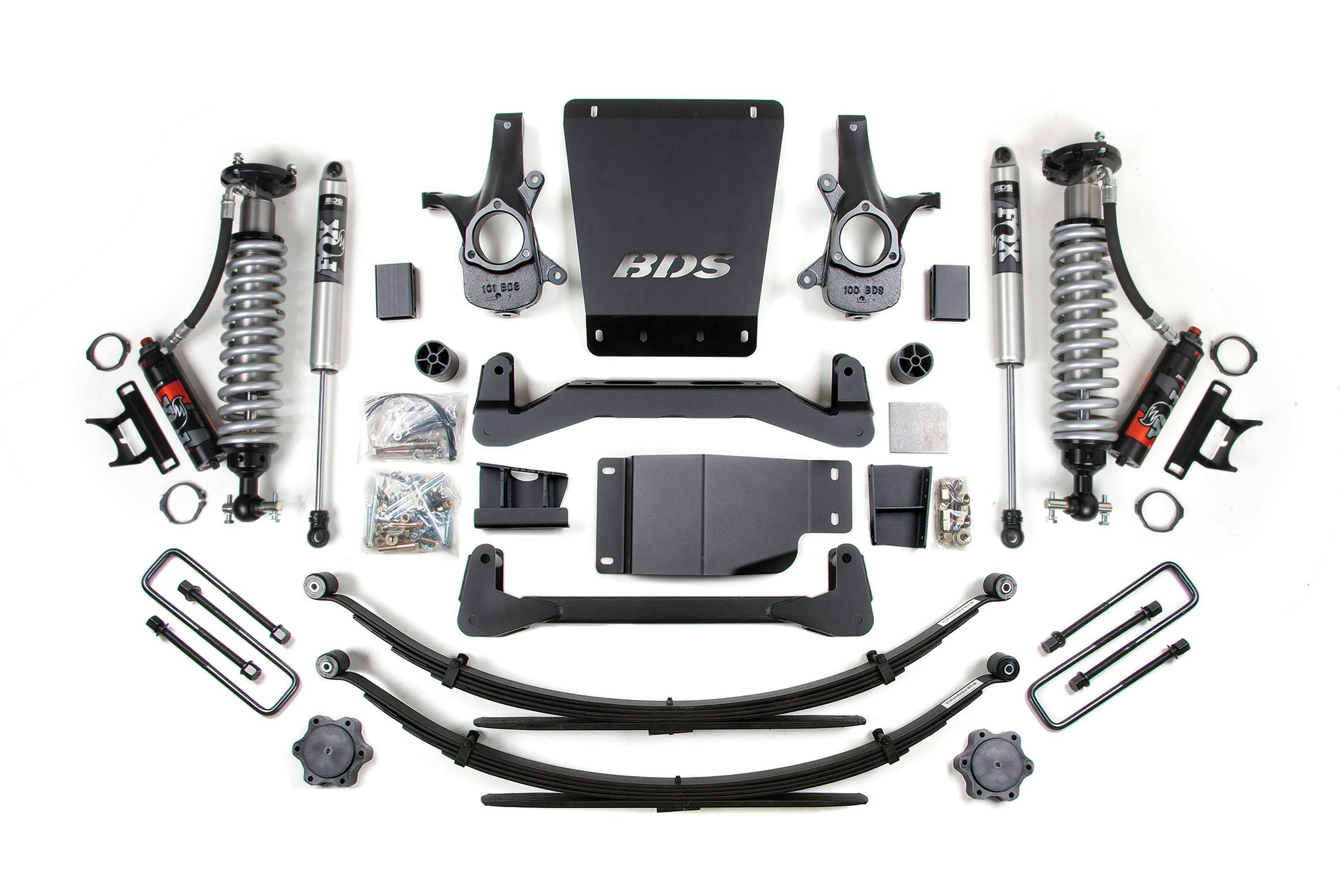 Take your 2007-2013 Chevy Silverado and GMC Sierra 1500 to new heights with a BDS 6-inch lift kit. Designed to improve stance, performance, and capability, this kit includes everything necessary to set your truck up right with clearance for up to 35" tires. This kit takes advantage of BDS's tried-and-true high-clearance design to improve ground clearance, strength, and off-road protection, while correcting suspension and steering geometry for excellent on-road handling. Up front, the kit utilizes full-length replacement strut shocks, high-arched 1/4-inch-thick steel crossmembers, along with multipiece differential relocation brackets and heavy-duty skid plates built for off-road protection. Steering geometry is corrected at the new taller ride height with CNC-machined ductile iron steering knuckles. These, combined with the provided sway bar drops, bump stop extensions, brake line brackets, CV spacers, supplied hardware, and more, provide a comprehensive front suspension lift ready for whatever you throw at it.