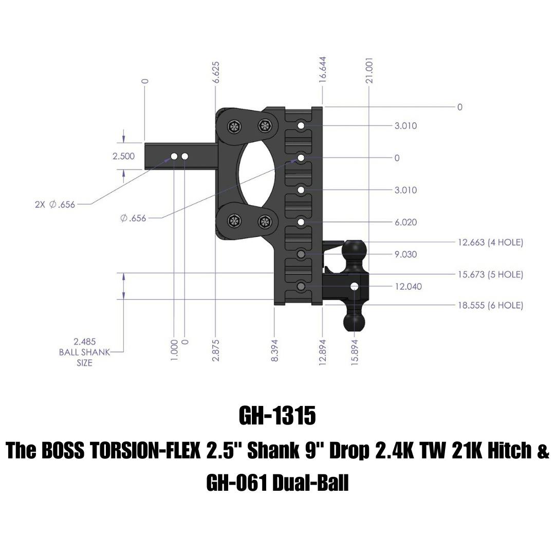 The BOSS TORSION-FLEX 2.5" Shank 9" Drop 2.4K TW 21K Hitch & GH-061 Dual-Ball