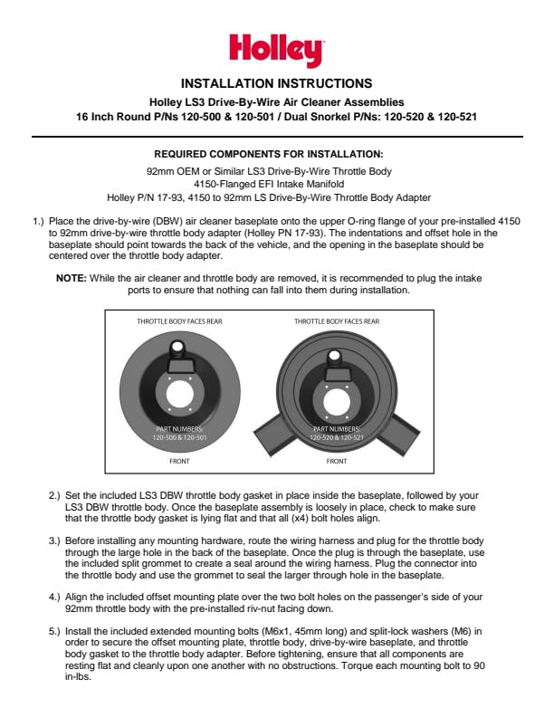 - Can be installed on any vehicle running a top mounted 4150/4BBL EFI capable intake manifold with LS3 DBW wiring components