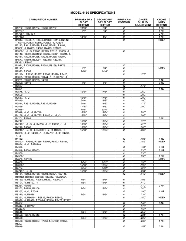Renew Kit Carburetor Rebuild Kit Model Number 4160 750 cfm.