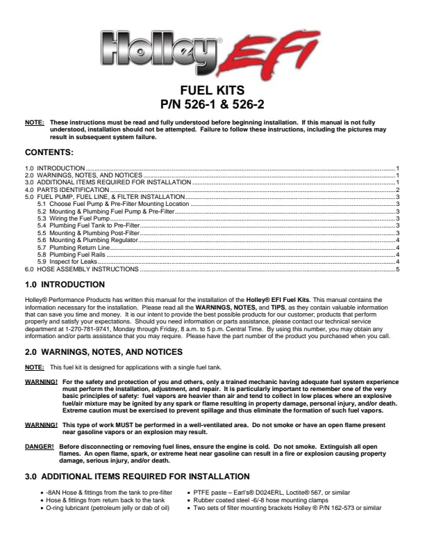 - Holley EFI fuel kits provide everything needed for a complete supply fuel system for the Terminator EFI. The following items are included:
