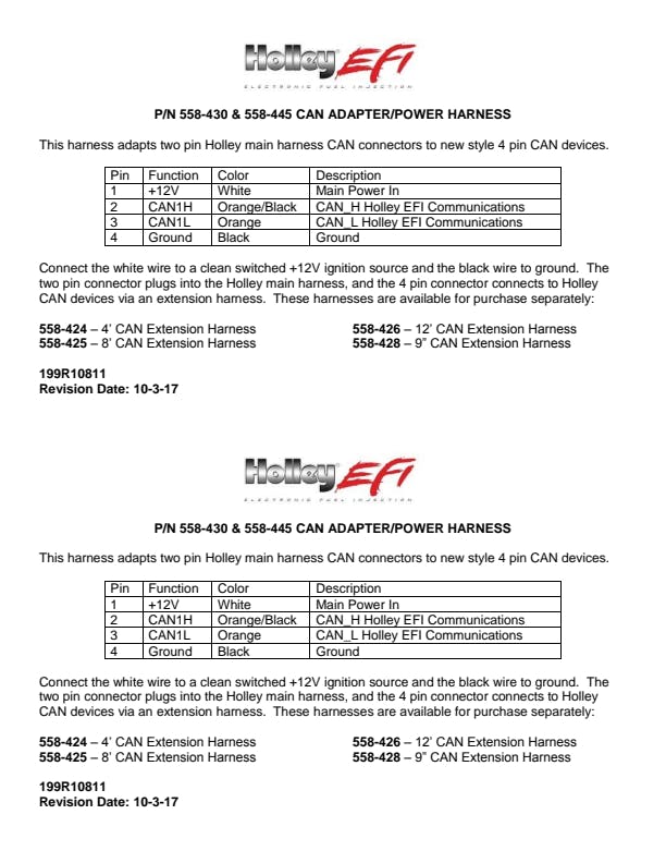 The Holley EFI Can Adapter/Power Harness adapts two pin Holley main harness CAN connectors to new style 4 pin CAN devices.
