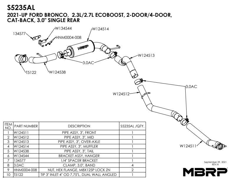 3in. Cat-Back. Single Rear Exit. Aluminized Steel.