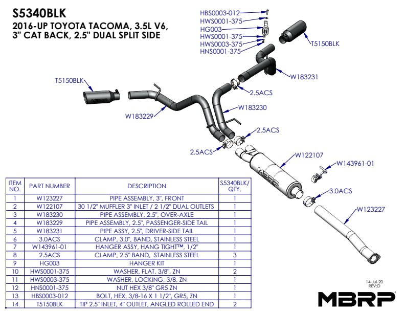 - Black Coated. Fully Sealed Seams for Rust Resistance. Bolt-on Installation. MBRP Signature Styling and Sound.
