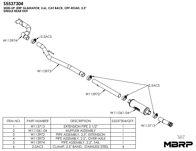 2.5in. Cat-Back. Single Rear Exit. Off-Road. T304 Stainless Steel.