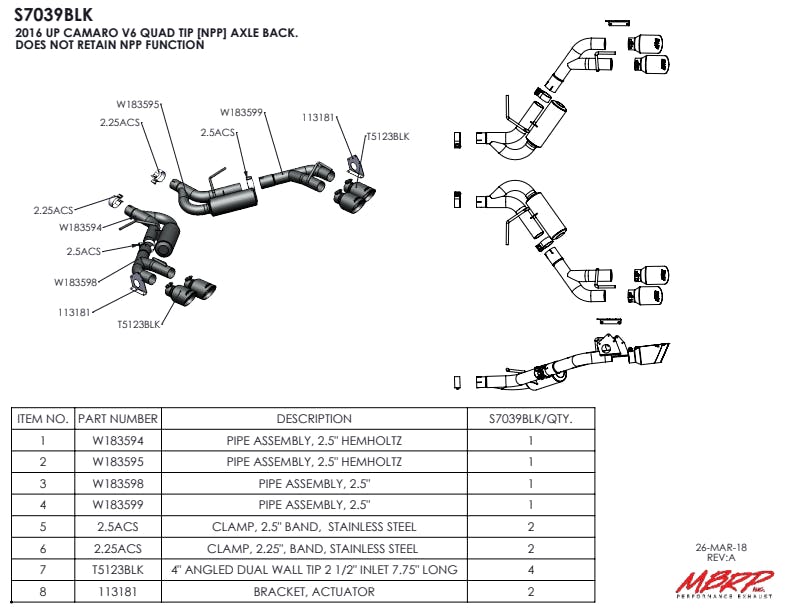 2.5in. Axle-Back. Dual Rear Exit. Quad Tips. Black Coated Aluminized Steel.