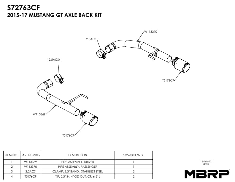 2.5in. Axle-Back. Dual Rear Exit. T304 Stainless Steel with Carbon Fiber Tips.