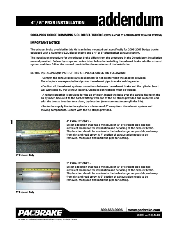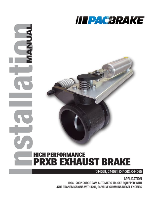 In Line Mount 4 inch PRXB High Performance Exhaust Brake Kit For Dodge RAM 94-95 Cummins 5.9L 6BT 12 Valve Engine W/47RH Automatic Transmission Pacbrake
