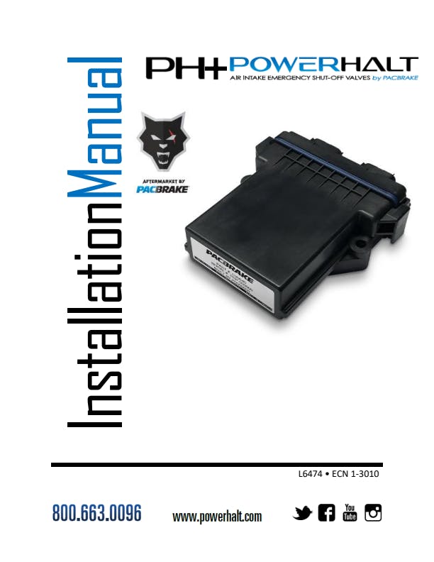 Pacbrake's PH+ Electronic Emergency Engine Shutdown system controls the electronic throttle body in the intake manifold found on most late model diesel engines and will close off the air supply in emergency situations, protecting your life, your livelihood, and your vehicle!