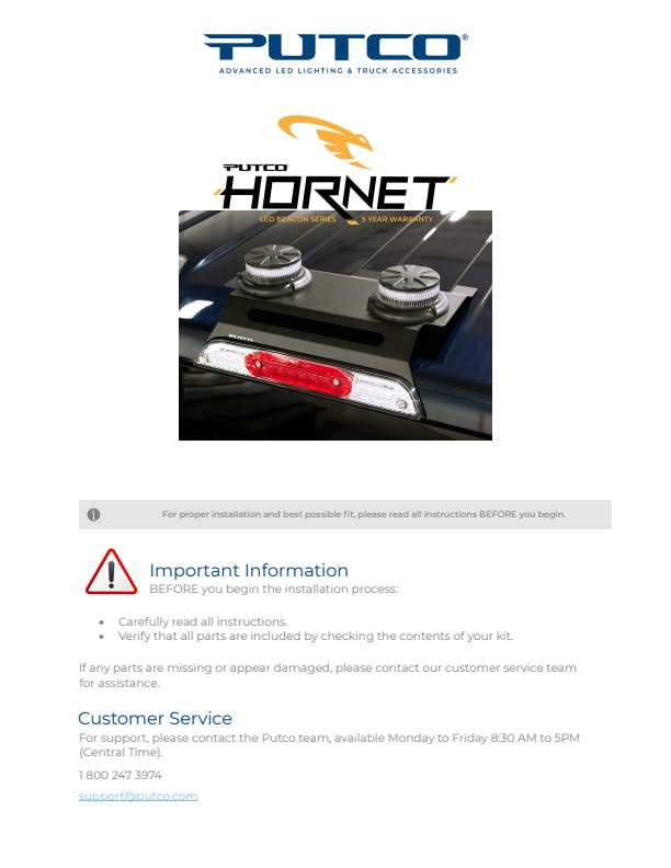 - Preassembled Dual Beacon Strobe Lights with Third Brake Light Bracket and Plug & Play Wiring Harness.