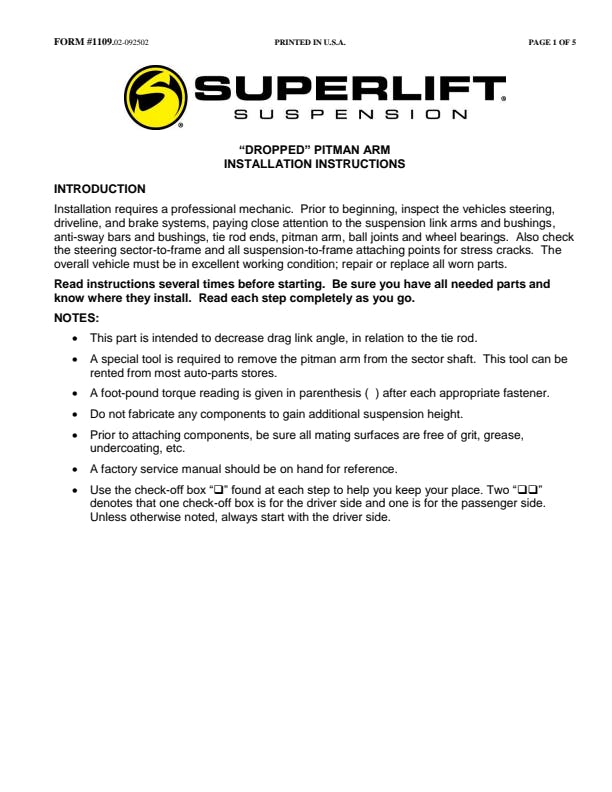 Includes: One drop pitman arm for 2017-2025 Ford F-450 and F-550 4WD |
