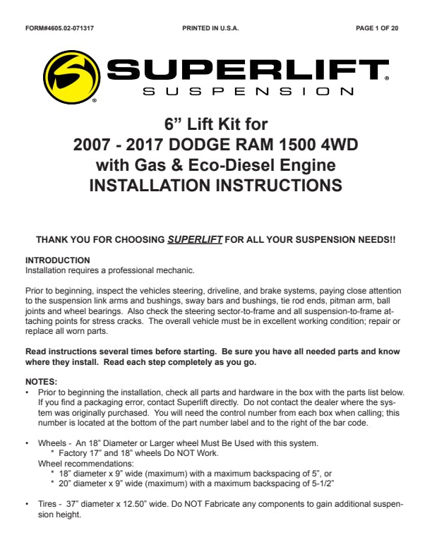 Established in 1975, Superlift remains a pioneer in the industry, and is one of the few suspension companies operated by true truck and off-road enthusiasts. We are passionate about trucks, wheeling and an outdoor lifestyle that go hand-in-hand. We can talk the talk because we walk the walk.This question.... ''What's best for the customer?''... is always at the top of our list in everything we do, from product planning and design to customer service. This simple guiding principal has served us well for decades, and will continue to guide us into the future.We are proud to provide the truck, Jeep and SUV owner products that perform better than advertised. We understand that most people spend the majority of their windshield time on-road, and our designs reflect this. You will be 100% satisfied with our products on-road or off - we guarantee it! Determining what product is right for your vehicle and lifestyle can be a complicated task, especially with so many companies and options to choose from. We urge you to carefully research your purchase. Most lift kits represent a considerable investment, and you will literally live with your choice for years. Talk to fellow off-roaders, and your local automotive specialty shop before making a purchase. We love to talk shop, and we encourage you to give our tech staff a call. Bottom line... if you do your homework, you'll discover that we've done ours.